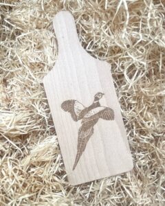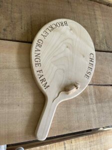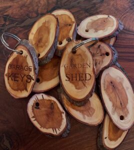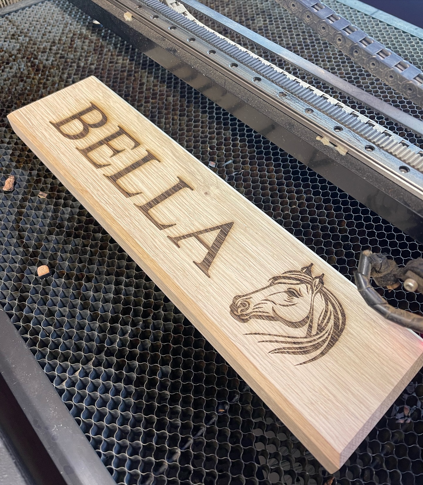 We have a variety of signs, keyrings and bread boards for sale in our showroom that have been laser engraved.